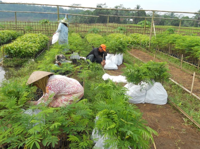 Selection and packing of Sengon at Berkah Lestari farmer group nursery  Loading of seeds from the nursery onto the truck then transported to the destination
